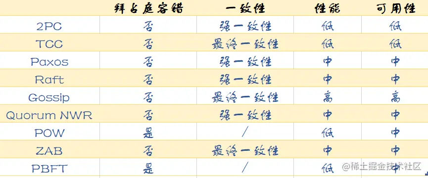 这里我做了一个分布式算法四大维度的表格,大家可以对比下: