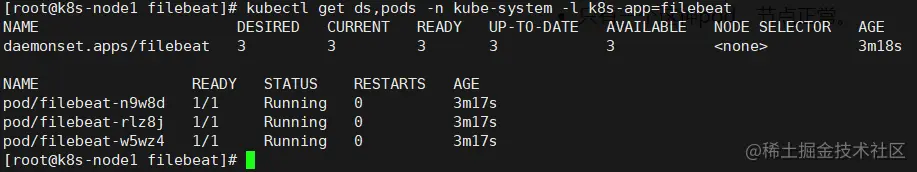 kubectl get ds,pods -n kube-system -l k8s-app=filebeat -o wide