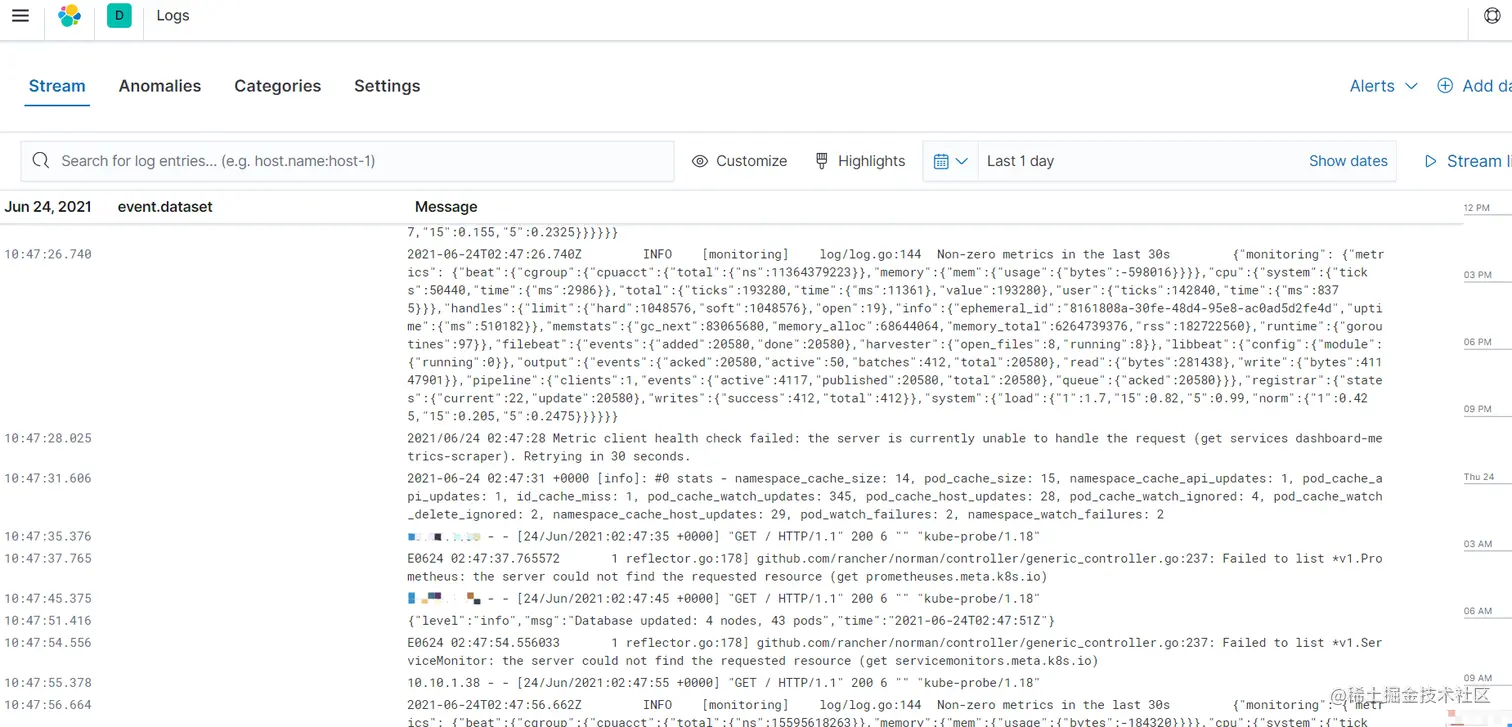使用docker搭建一个kibana(juejin.cn/post/684490…),然后创建索引,既可查看日志了