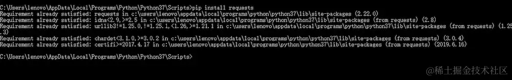 1:确保已经安装 requests模块如果没有安装,可以使用命令安装,安装命令如下: