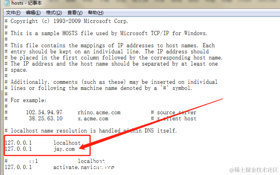 按照这个路径找到hosts文件,右键打开方式使用记事本打开,在localhost下面加上想要的任意域名。