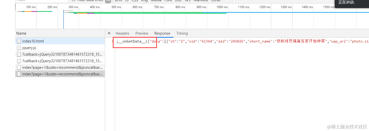 该种跨域的请求方式需要后台配合返回响应的函数执行数据。