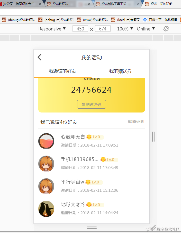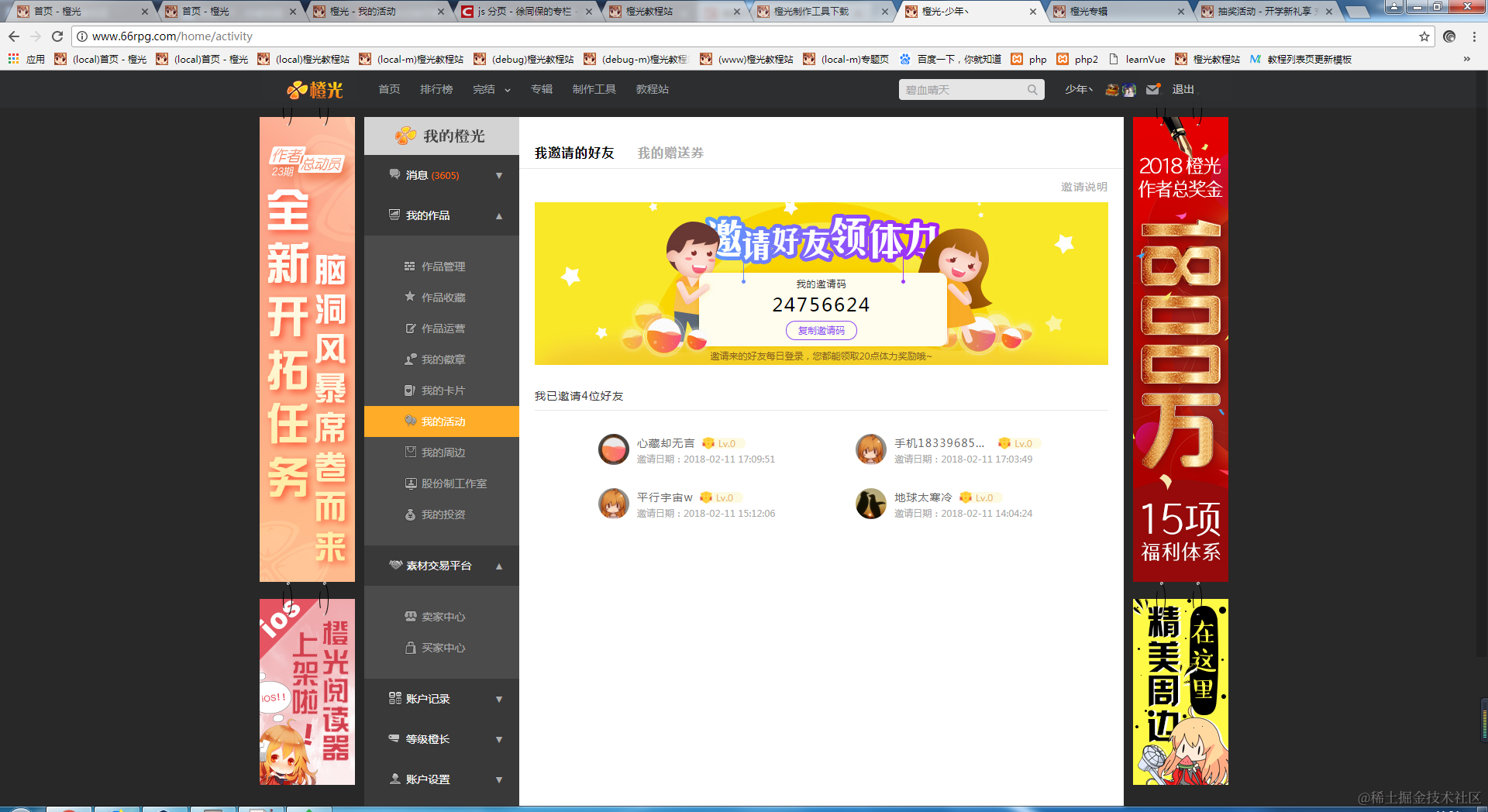 8.我的活动页(需要登录才能访问)