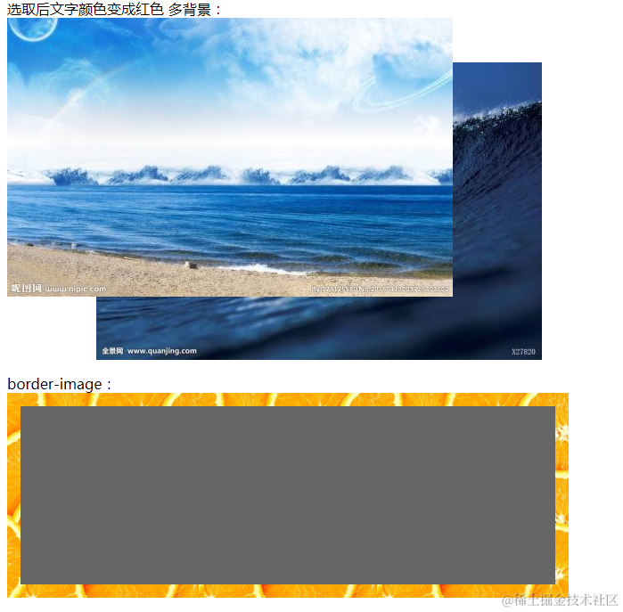 .m-demo{height: 400px;background: url(https://ss1.bdstatic.com/70cFvXSh_Q1YnxGkpoWK1HF6hhy/it/u=3240464600,3985442193&fm=27&gp=0.jpg) 0 0 no-repeat,url(https://ss0.bdstatic.com/70cFvHSh_Q1YnxGkpoWK1HF6hhy/it/u=499121603,3200983999&fm=200&gp=0.jpg) 100px 50px no-repeat;}