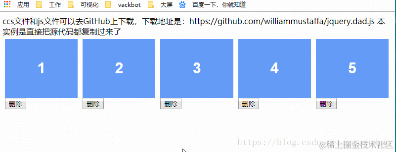 ccs文件和js文件可以去GitHub上下载,下载地址是:https://github.com/williammustaffa/jquery.dad.js