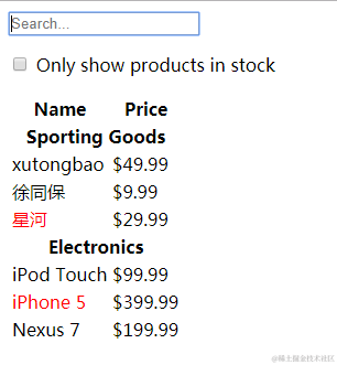{category: 'Sporting Goods', price: '$29.99', stocked: false, name: '星河'},