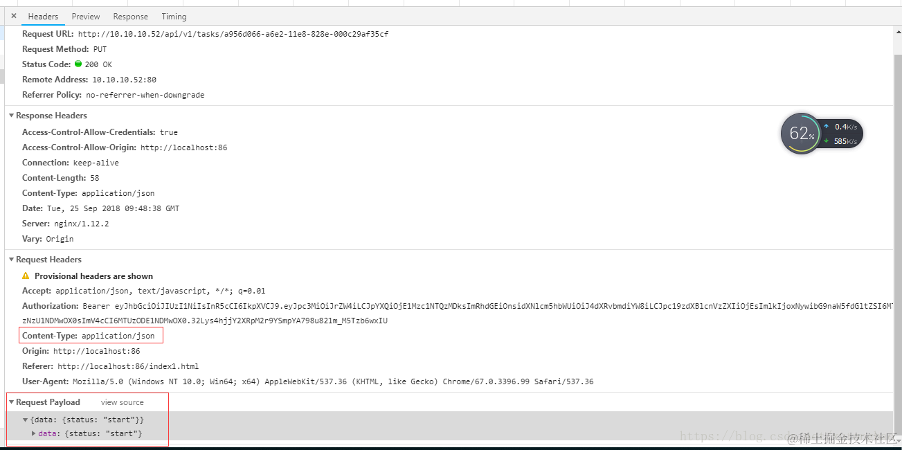 Request Payload 请求头部的 Content-Type: application/json,请求正文是一个 json 格式的字符串