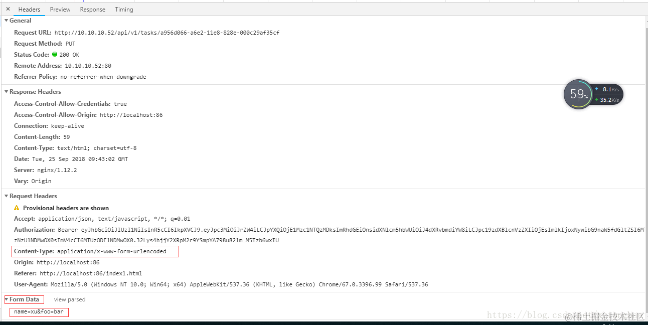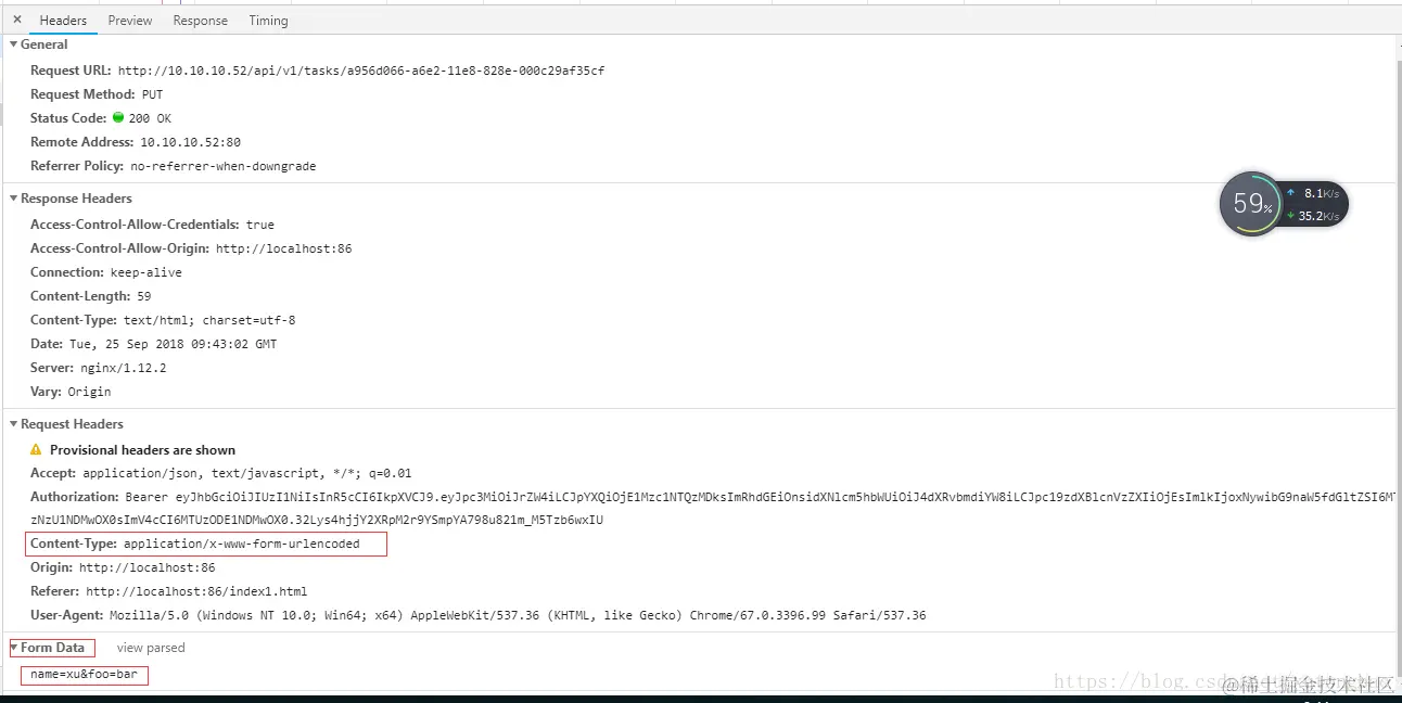 Form Data 请求头部的 Content-Type: application/x-www-form-urlencoded,请求正文是类似 get 请求 url 的请求参数