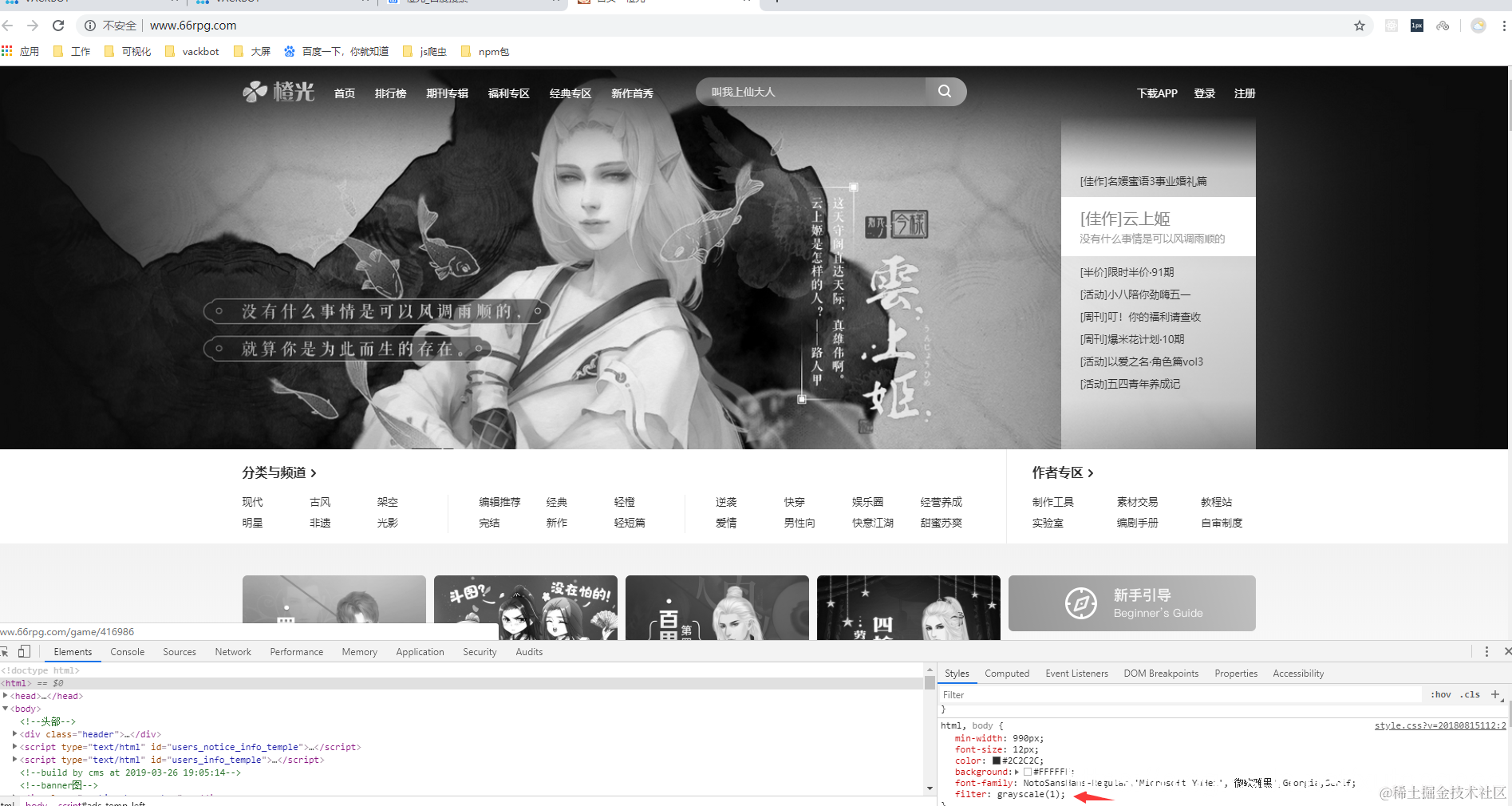 一行代码把网站变成黑白色调