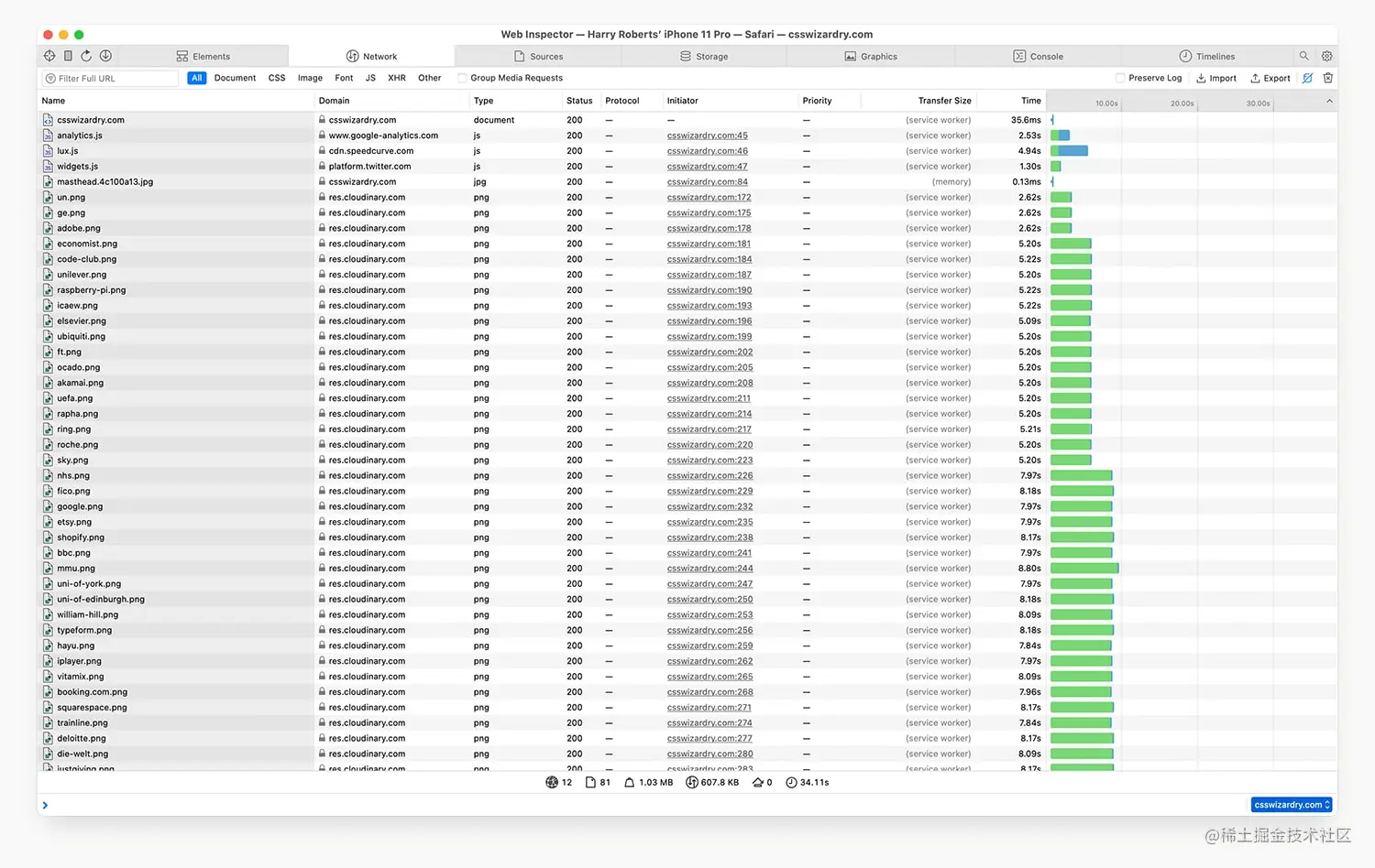 遗憾的是,在文章及其截图中,我了解到已经没有办法在Safari中禁用ServiceWorkers了。 这意味着截图中的数据都不是特别有趣,但幸好我们不是在这里对我的网站进行分析。