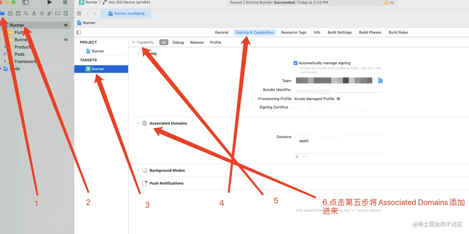 2、将域名写入 Domains,格式如下applinks:你的域名,不需要https