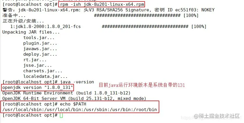 rpm -ivh jdk-8u201-linux-x64.rpm