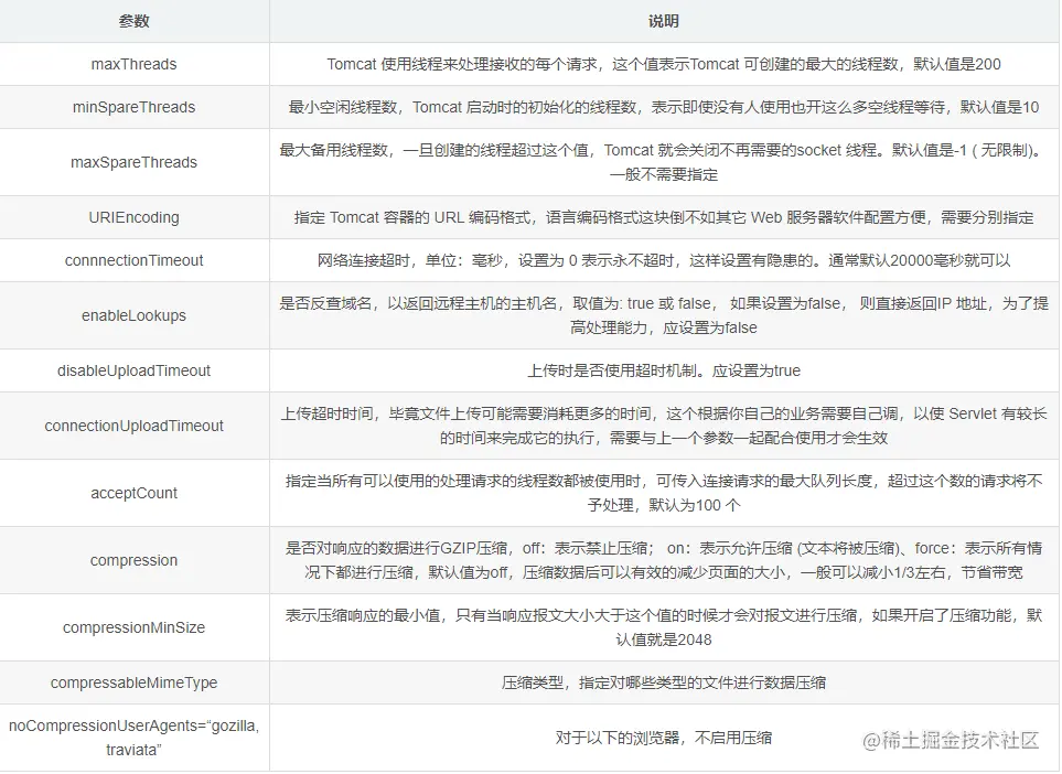 Tomcat 默认安装下的缺省配置并不适合生产环境,它可能会频繁出现假死现象需要重启,只有通过不断压测优化才能让它最高效率稳定的运行。优化主要包括三方面,分别为操作系统优化(内核参数优化),Tomcat配置文件参数优化,Java虚拟机(JVM)调优。今天我们就了解一下Tomcat配置文件参数优化。