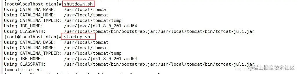 #重启服务;命令路径优化后可以直接使用shutdown.sh和startup.sh
