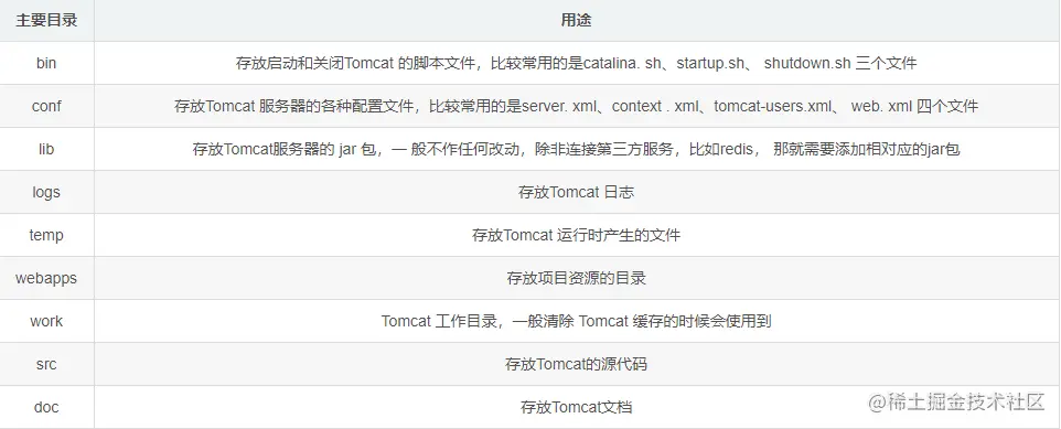 tomcat的主要目录
