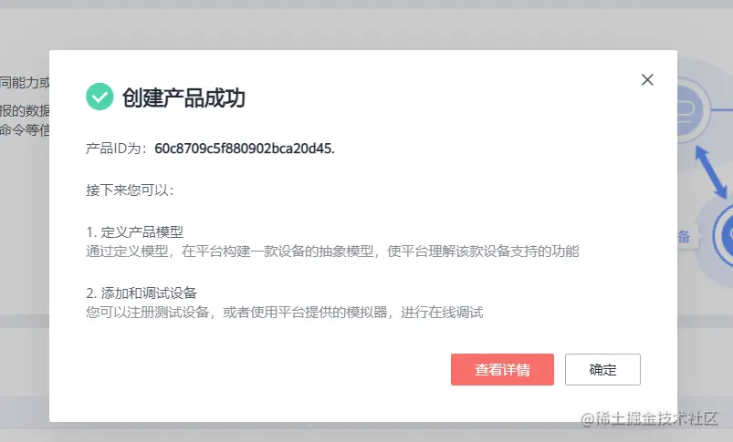 创建完毕,弹出产品创建成功的窗口消息。