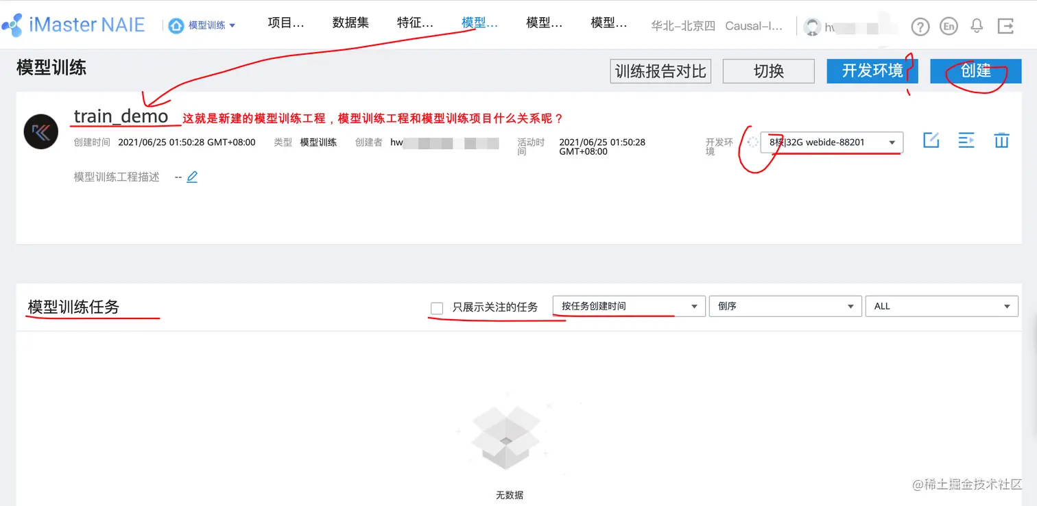 进入模型训练服务控制台界面,在这里“新建模型训练工程”