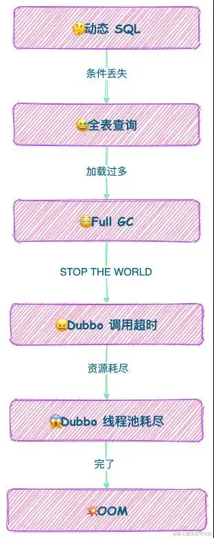 而由于订单表的数据非常多,全表查询返回的数据将会源源不断的加载到应用内存中,从而引发 「Full GC」,导致应用陷入长时间的 「stop the world」。