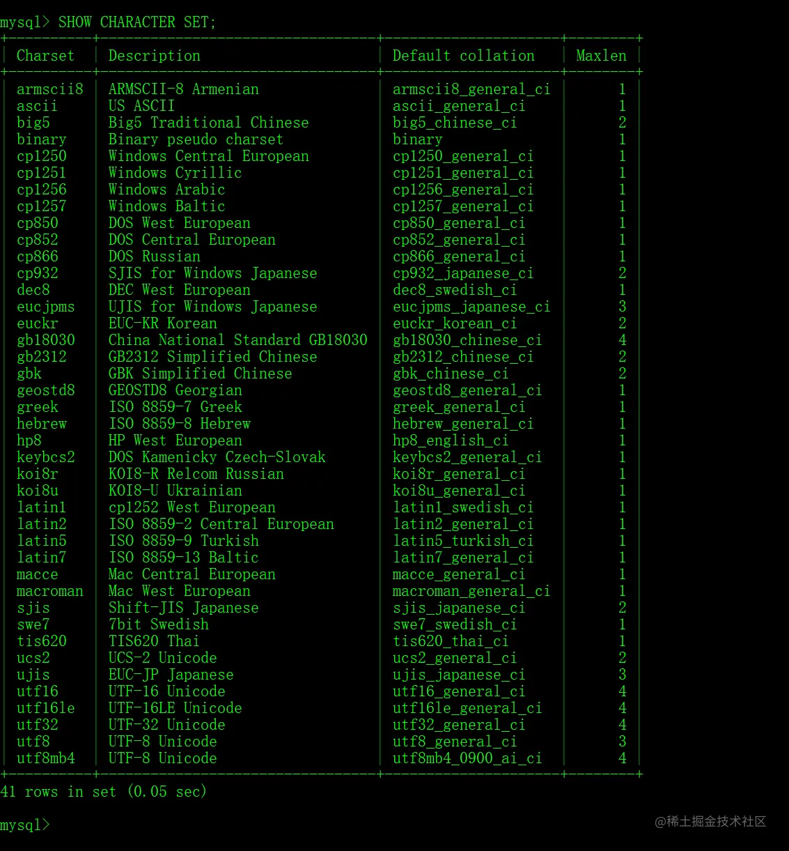 # 服务端使用的字符集默认为utf8