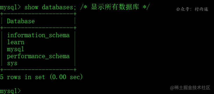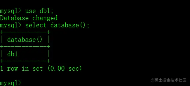 USE 数据库名;- 查询当前正在使用的数据库