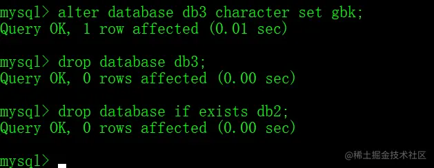DROP DATABASE 数据库名;- 判断数据库是否存在,存在再删除
