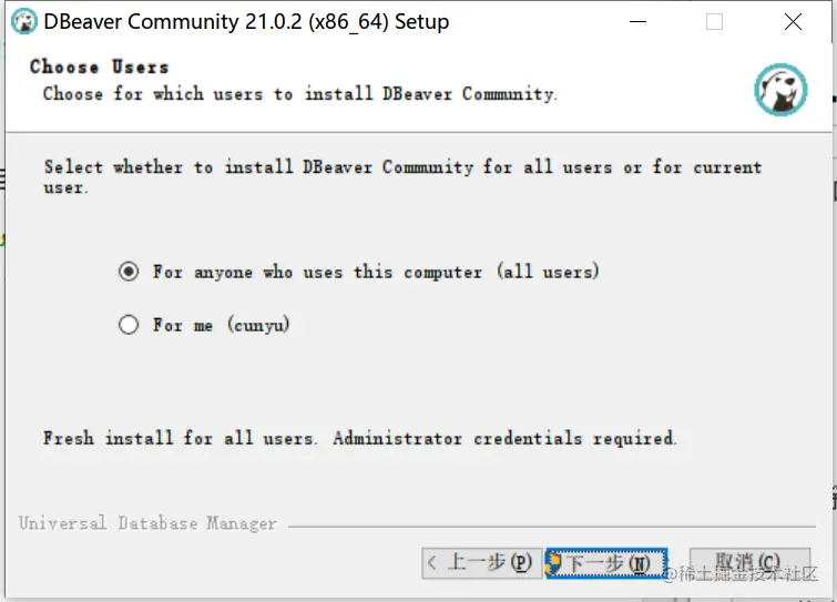 为所有使用该电脑的用户安装还是只为你当前的用户安装,一般选择所有用户;