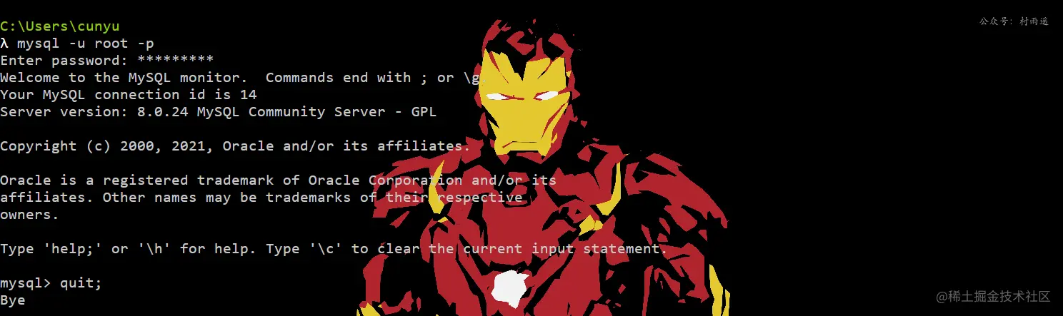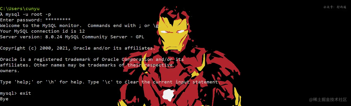 - mysql -u 用户名 -p