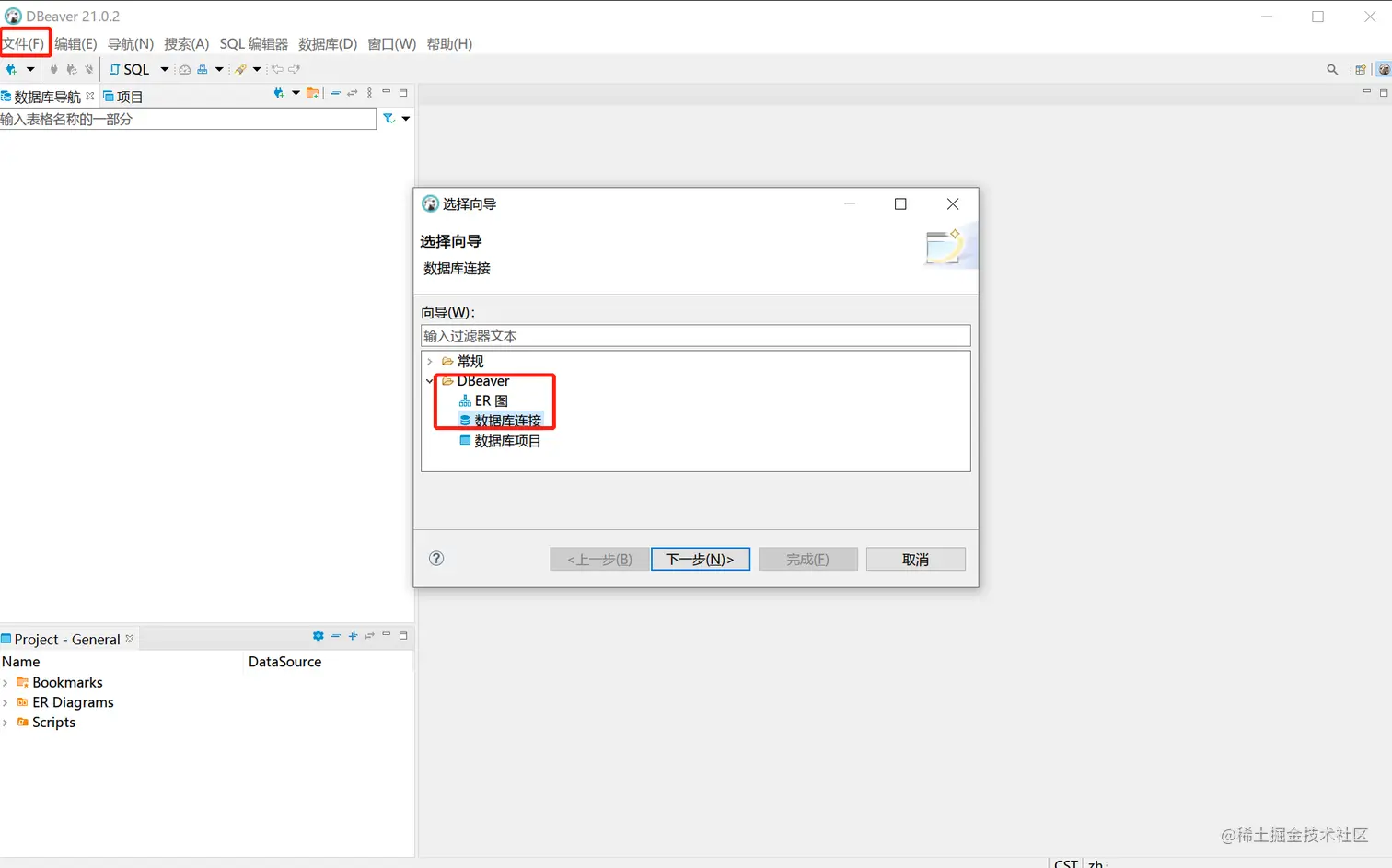 文件 -> 新建 -> DBeaver -> 数据库连接,然后下一步;