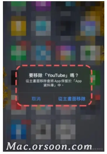 若是原本预设的删除方案,那么在选单中选择「移除App」后,便会跳出一个询问的选单,问你是要「删除」或者是「移除」。