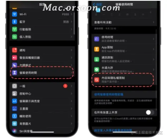 首先进到「设置」,进入「萤幕使用时间」功能工,选择「内容与隐私限制」