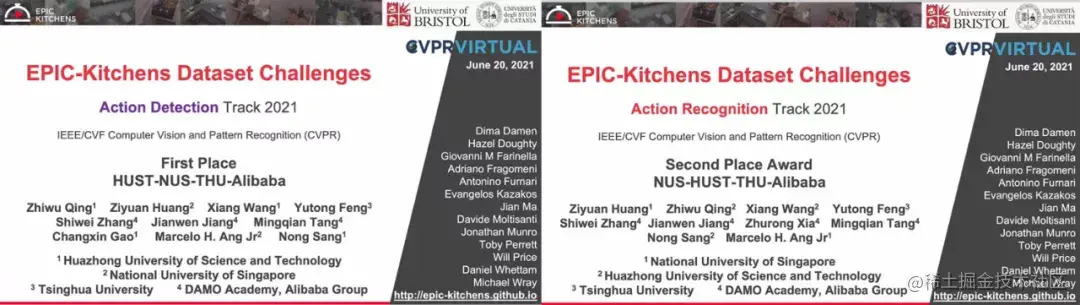 今年阿里云多媒体 AI 团队(由阿里云视频云和达摩院视觉团队组成,以下简称 MMAI)参加了大规模人体行为理解公开挑战赛 ActivityNet、当前最大时空动作定位挑战赛 AVA-Kinetics、超大规模时序行为检测挑战赛 HACS 和第一视角人体行为理解挑战赛 EPIC-Kitchens 上的总共6 个赛道,一举拿下了 5 项冠军和 1 项亚军,其中在 ActivityNet 和 HACS 两个赛道上连续两年蝉联冠军!