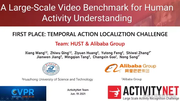 该挑战赛主要解决时序行为检测问题,以验证 AI 算法对长时视频的理解能力,是该领域最具影响力的挑战赛之一。历届参赛者来自许多国内外知名机构,包括微软、百度、上交、华为、商汤、北大、哥大等。