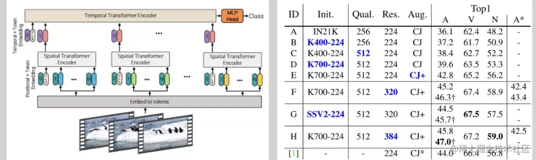 图 5 ViViT 的结构及其性能