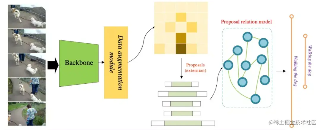 然后基于自注意力机制,在时间维度上对这些提名实体进行时序关系编码,使得每个动作提名均能感知到全局信息,从而能够预测出更加准确的行为位置,凭借此技术,EMC2 在 AcitivityNet 等时序行为检测上取得冠军的成绩。