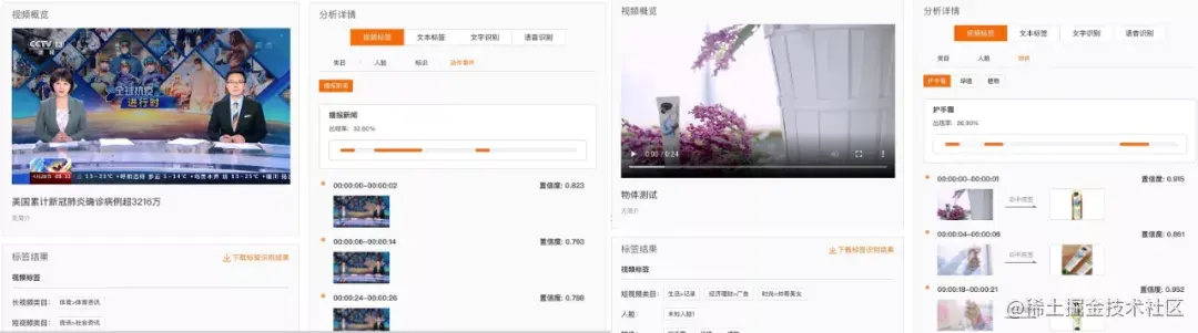 图 10 多媒体 AI 对体育行业和影视行业标签识别