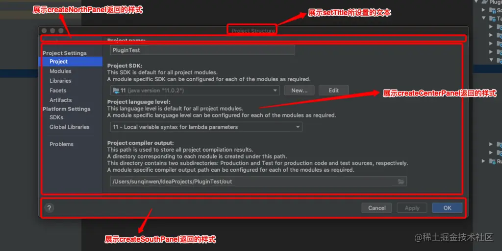 // 特别说明:不需要展示SouthPanel要重写返回null,否则IDEA将展示默认的"Cancel"和"OK"按钮