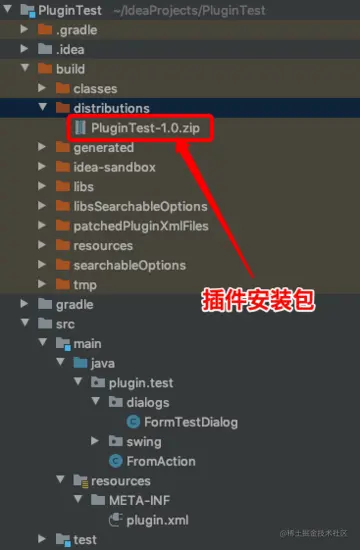 构建完成后,查看build包下的distributions目录,里面的zip包就可以直接安装进你的IDEA: