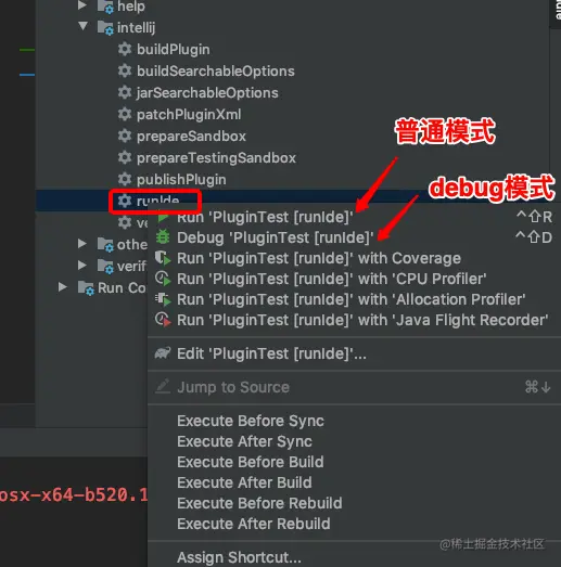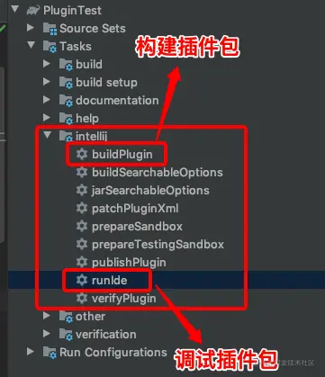 runIde,它用来调试插件,运行它会再次启动一个Idea,这个Idea会自动安装上你当前定义的插件包,让你用来调试。