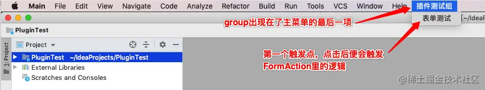 <!--add-to-group控制把该分组加到IDEA里,group-id用来描述加在哪个位置,MainMenu表示加在IDEA上方的主菜单栏里,