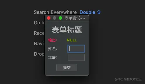 除非有特殊情况需要自定义swing样式,否则建议不加任何swing样式,这样自定义的swing界面是会随着IDEA的主题改变而去自适应的,比如将图7中的调试IDE的主题设置成Darcula,自定义的表单也会自适应的变成黑色背景: