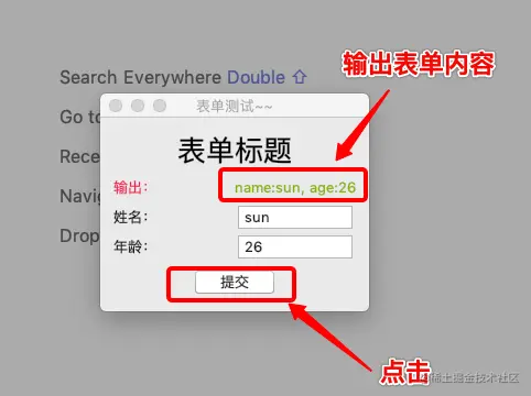 现在再来点击下“提交”按钮,就可以输出表单内容了: