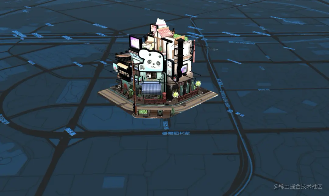 通过上面的API调用就可以实现模型数据的加载渲染。整个地图图面的全量要素表达都可以通过这种形式进行可视化描述。