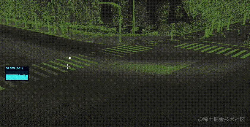 点云渲染的最大问题是海量数据实时加载和动态拾取,eagle.gl实现了基于全球ECEF统一坐标索引下点云实时从网络加载,能够实现支持内存中同时800w以上海量点云LOD实时加载以及根据反射率/高度/MIX混合着色能力,渲染帧率可以保持在60fps,通过GpuPicker和Raycast混合拾取方案实现数据拾取交互的实时性。