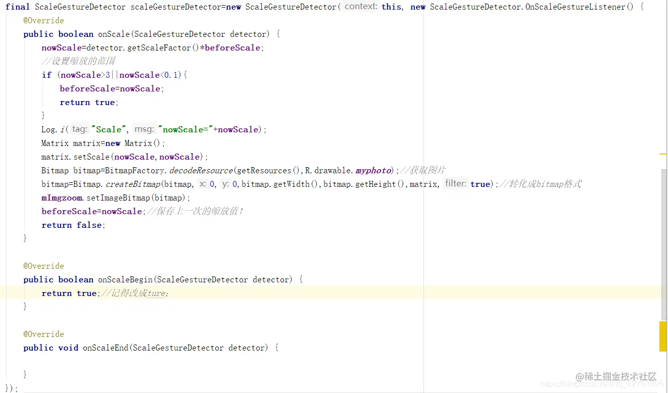 final ScaleGestureDetector scaleGestureDetector=new ScaleGestureDetector(this, new ScaleGestureDetector.OnScaleGestureListener() {