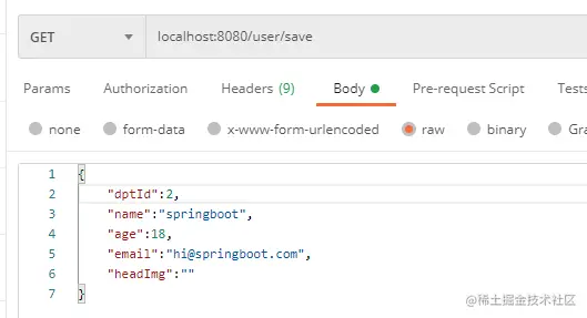 在UserController里面添加上面的方法。使用@RequestBody接收数据,然后调用userJpa的save方法保存数据,接下来我们用postman试下。