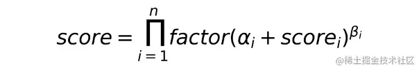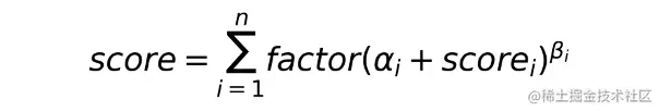 其中,αi:超参,灵敏度;scorei: 模型i的输出;βi:超参,提升比例,非线性处理;factor:超参,组合权重;n:模型数量。