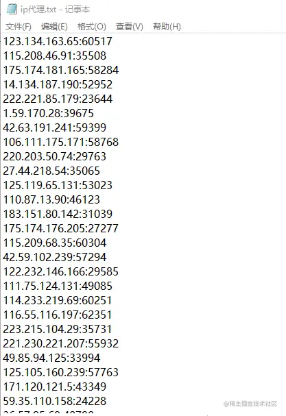 这样我们就可以将提取的IP代理放到文本文件中。