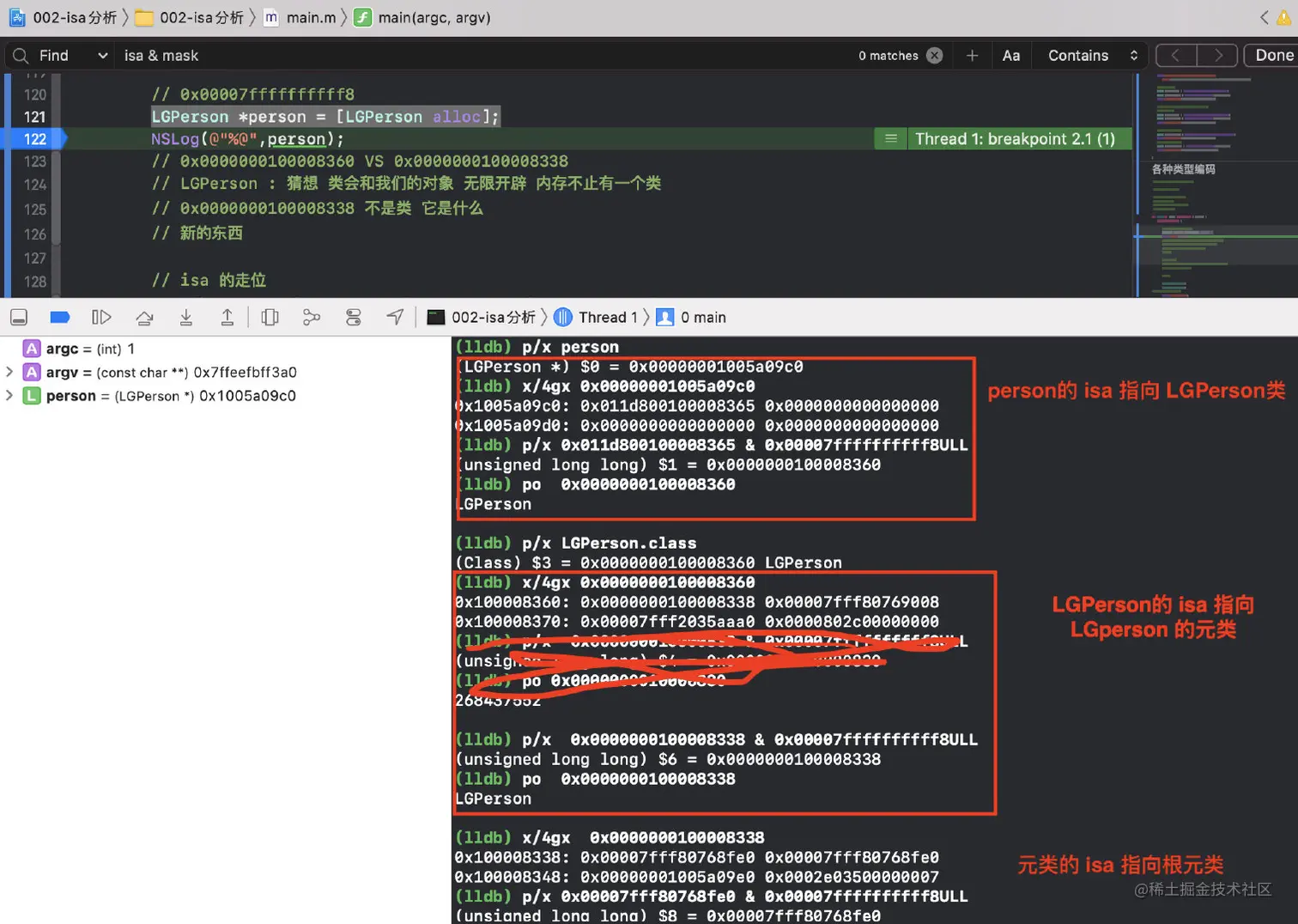 通过 NSobject 跟自定义的 LGPerson 类来查看 isa 的走位图
