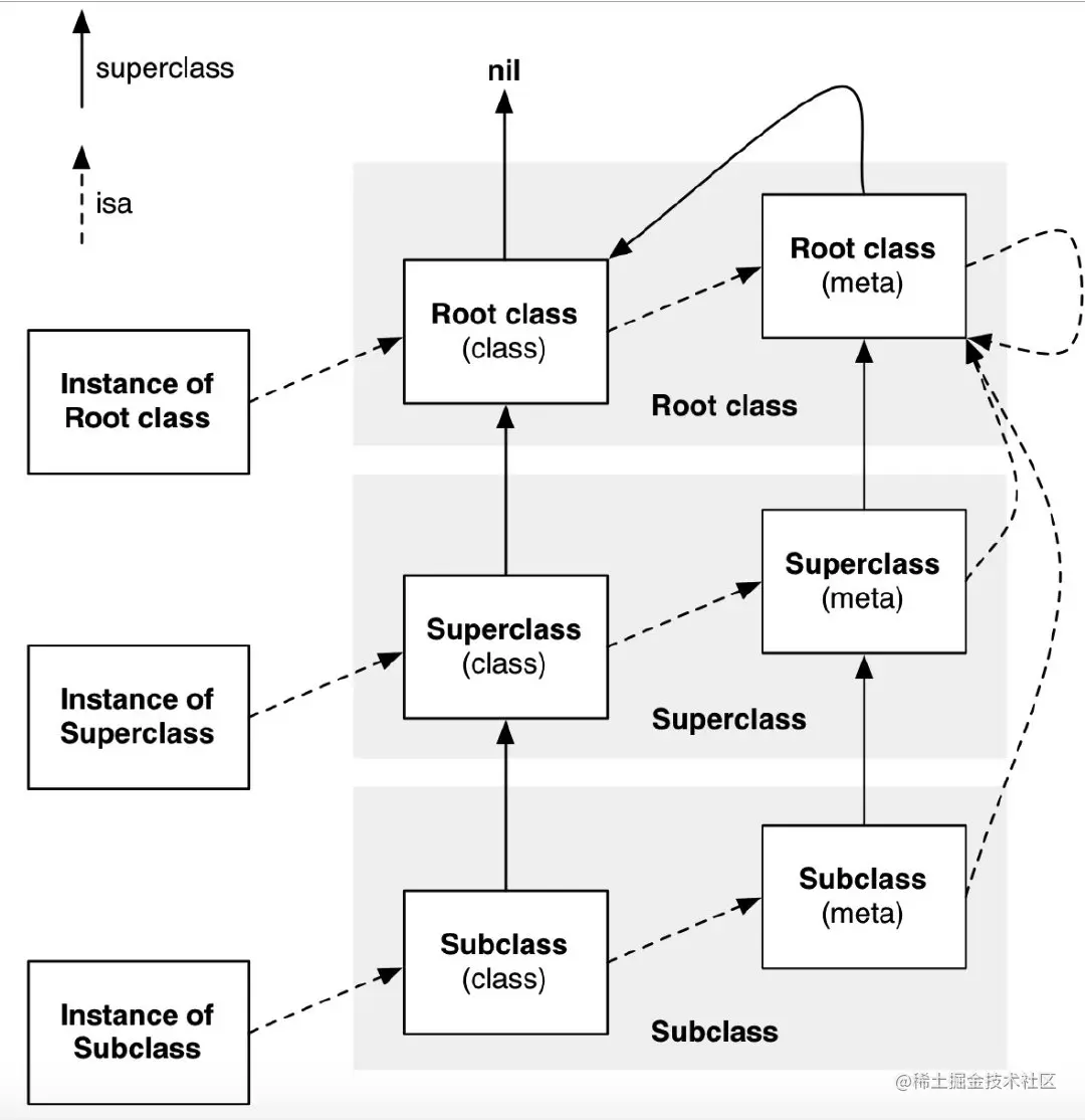 2.子类继承自父类,父类继承自根类,根类继承自什么?答案是 nil(根类不是继承与自己)