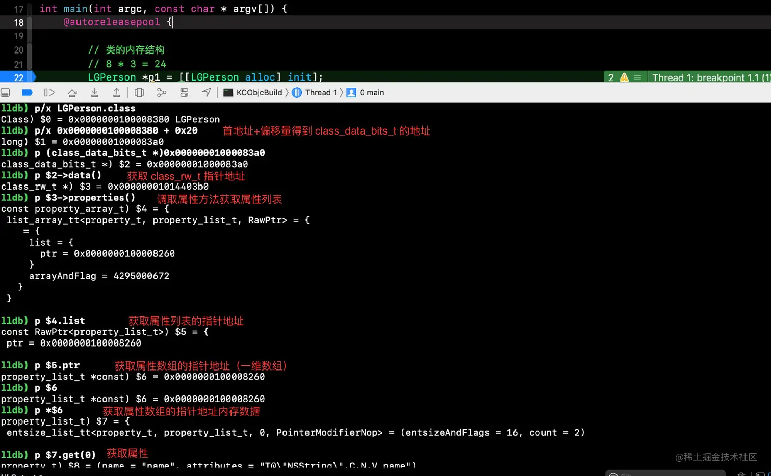 创建一个对象LGPerson *person = [LGPerson alloc];,通过 lldb 调试一下